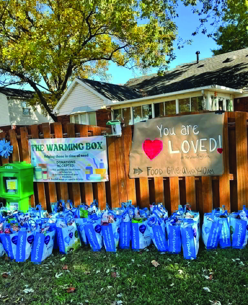 Taylor’s Warming Box is located at Hays Boat Ramp, right next to Park Baseball Field. Blessing Boxes have quickly grown over the last four years. “We now have at least nine boxes in Henderson County alone,” Taylor said. These include the locations of East End near Audubon Kids Zone, The Bridge Church parking lot, Chloe Randolph Organization lot, Center Street, Warming Box at Hays, Father Bradley Shelter parking lot, Corkscrew Curiosities on 2nd Street (front porch), Spottsville/Reed area and Redbank’s Nursing Home parking lot.